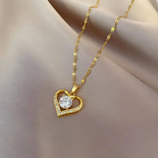 Halskette mit Herzanhänger aus Edelstahl 18 Karat vergolde