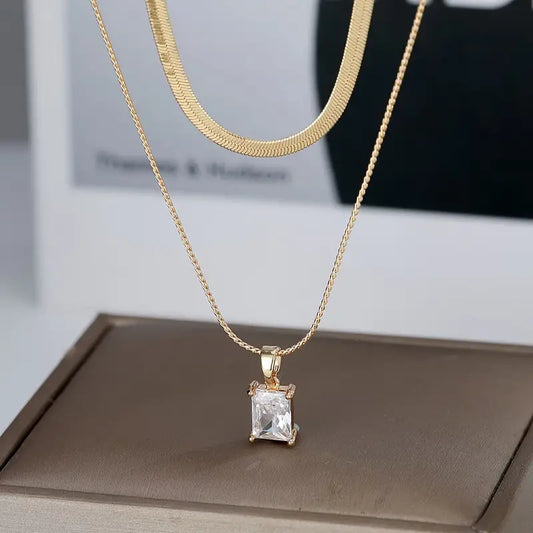 Halskette mit Anhänger2 Set Quadratischer Zirkon Anhänger Edelstahl